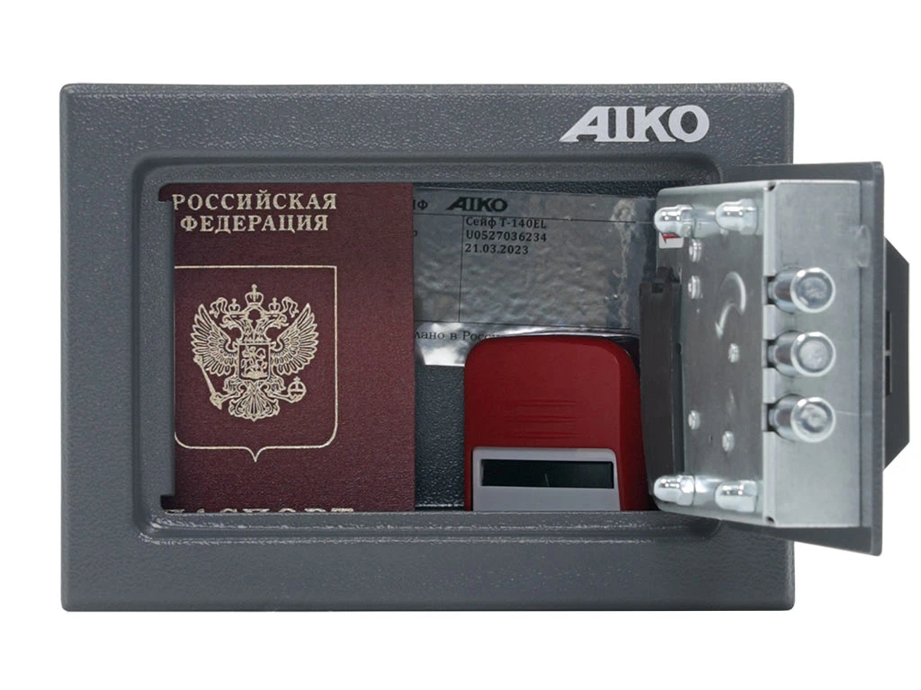- — Офисный сейф Aiko T-140 EL имеет сертификат соответствия стандартам ГОСТ на начальную устойчивость ко взлому и соответствует требованиям МВД РФ к хранению огнестрельного оружия.