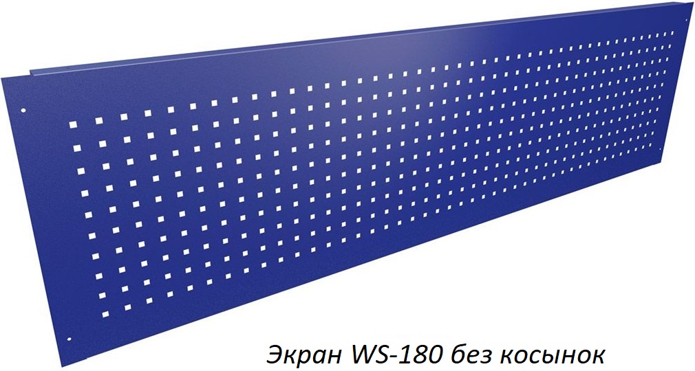 - Важным дополнительным элементом верстака является перфорированный экран из металла толщиной 1.2. мм. Он защищает стену за верстаком, а частая перфорация с шагом 38 мм позволяет удобно расположить различные держатели, полочки для небольших предметов, блок розеток, а также ‒ комплект диодного освещения со световым потоком 880 люмен.