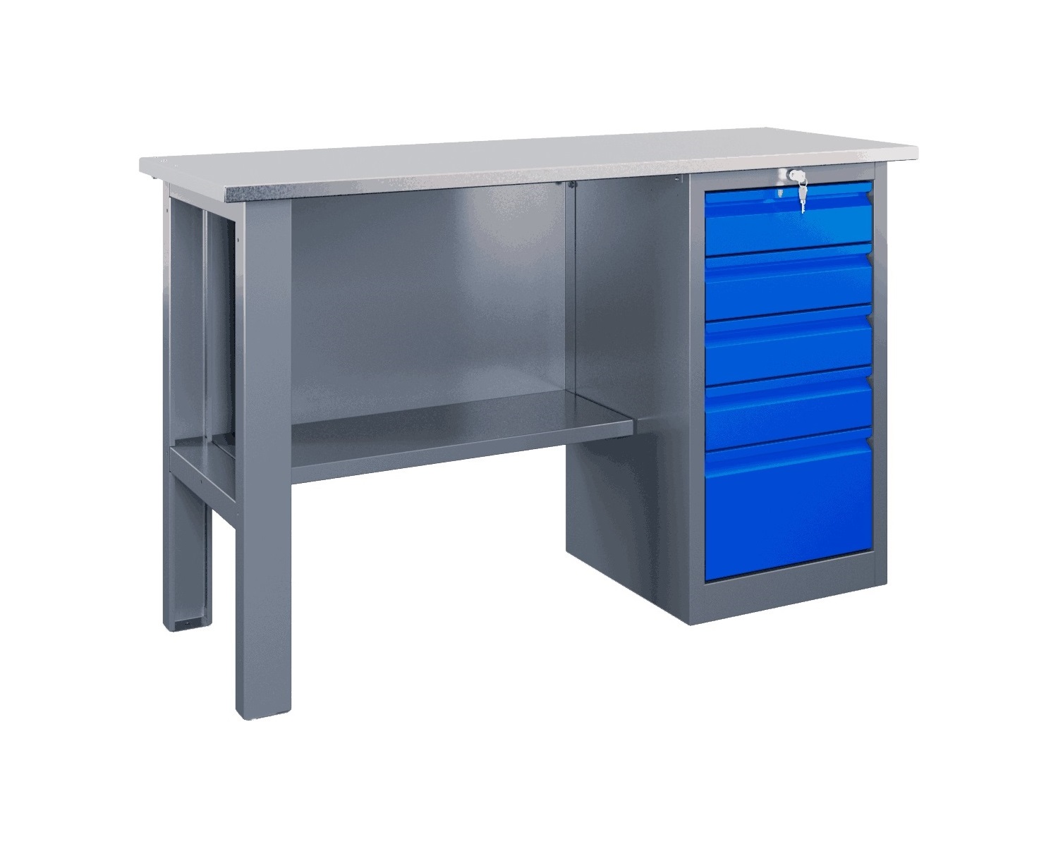 - Ключевые элементы и опоры производятся из листового металла (от 0.6 до 1.5 мм), гарантируя стойкость и надёжность верстака в течение долгих лет службы.
